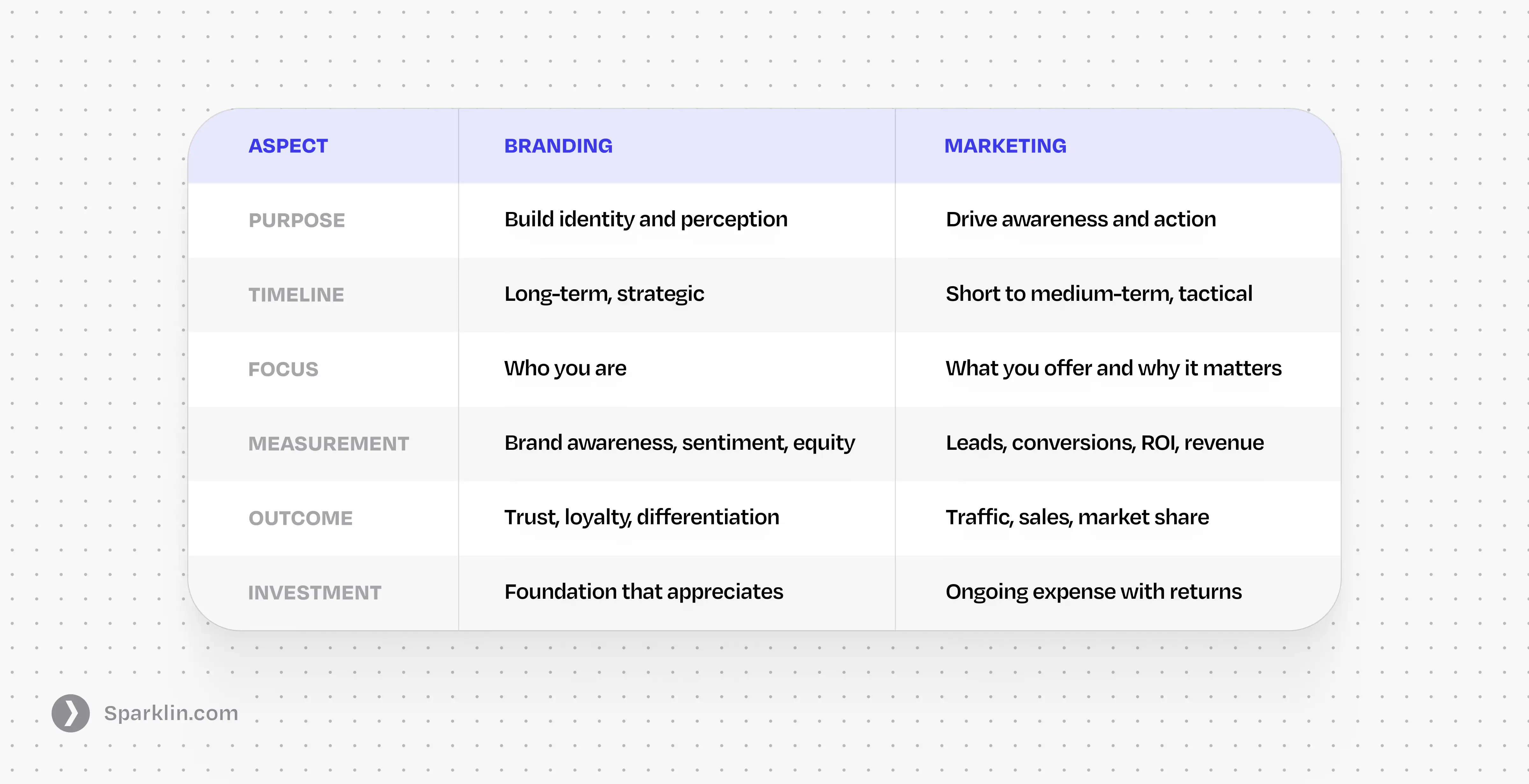 The relationship: Branding is the stage; marketing is the performance. Strong branding makes marketing more effective and less expensive. Weak branding means you're constantly shouting louder just to be heard.