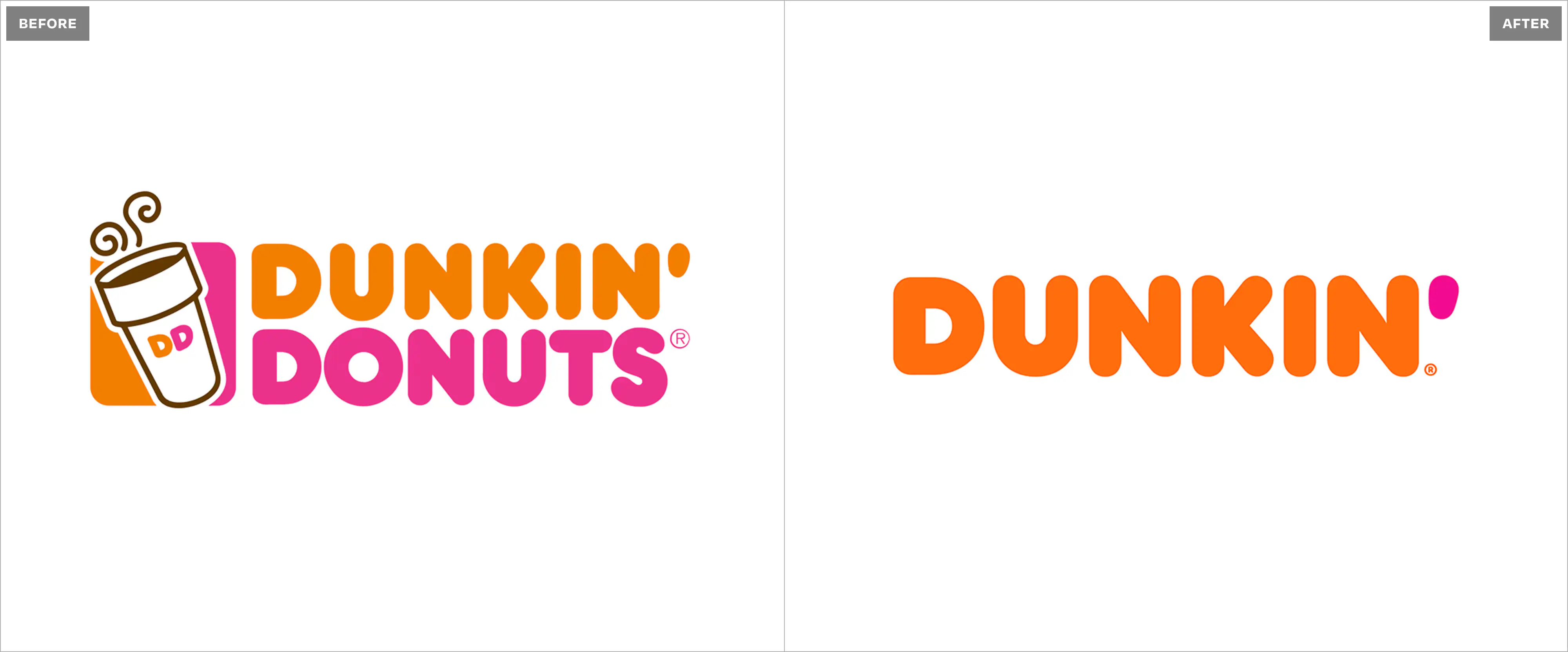 Consider what Dunkin' did in 2019. The company dropped "Donuts" from its name after 68 years. The visual change was minimal, with cleaner typography and the same orange and pink. But the positioning shift was significant. Dunkin' had spent years expanding its beverage menu and trying to compete in the coffee space dominated by Starbucks. The old name anchored perception to a product category the company was trying to move beyond. Keeping "Donuts" in the name meant every customer conversation started with an outdated assumption about what the business primarily offered.